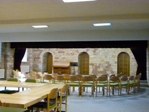 Unter der Kirche befindet sich ein Saal, dem das schöne Sandstein-Gemäuer eine besondere Atmosphäre verleiht. Er dient für Veranstaltungen und als Probenraum für den Chor, wird aber auch für Familienfeiern vermietet. Die Bühne mit Vorhang bietet Möglichkeiten für künstlerische Darbietungen. Eine Theke mit Kühlfächern kann für die Bewirtung genutzt werden. Auch eine Küche ist vorhanden. An den Saal angebaut sind auch ein Jugendraum und Sanitärräume.